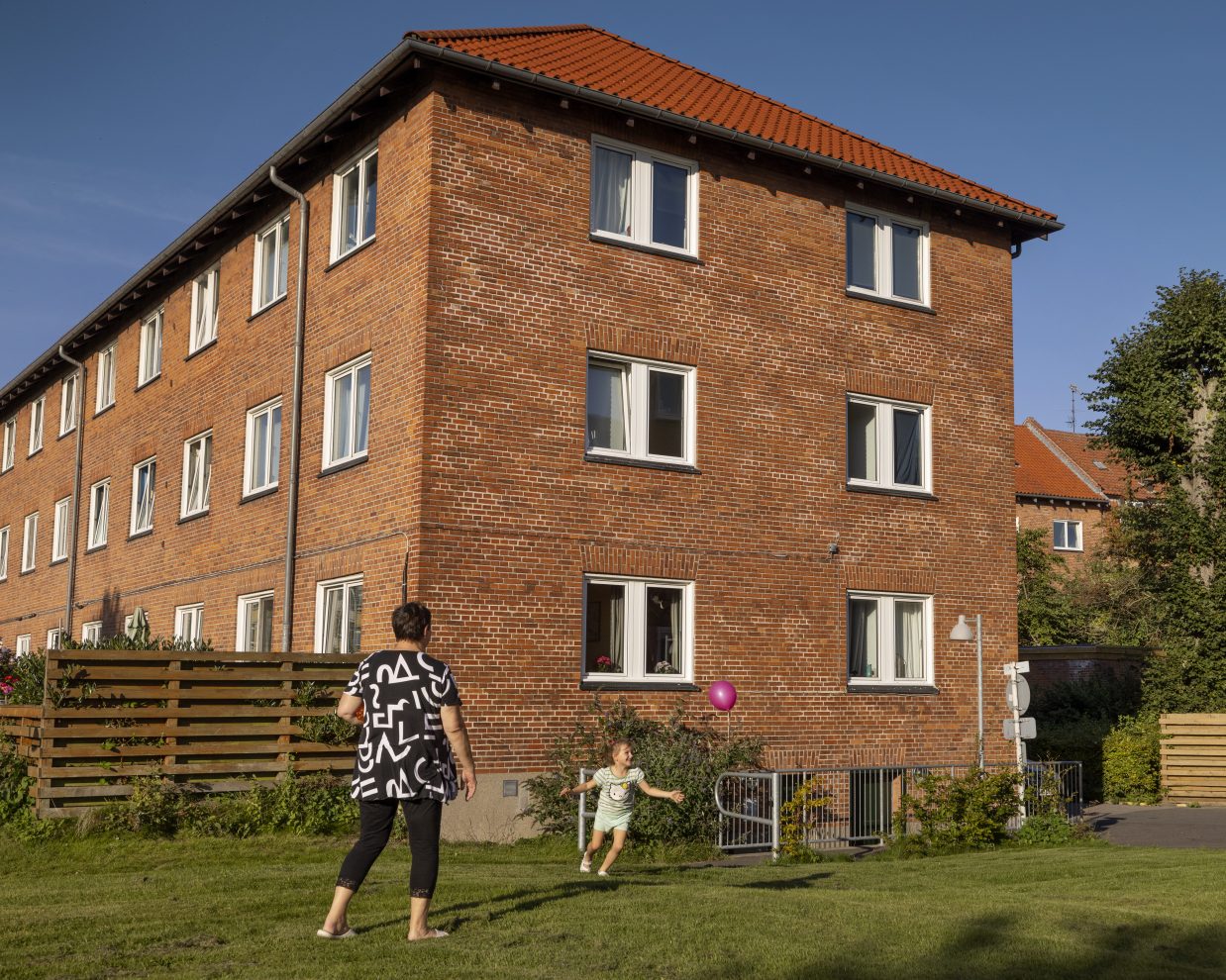 Næste alle stuelejligheder har egne haver med gode muligheder for dyrke lidt jord eller spise sin mad ude ved sit eget havebord.